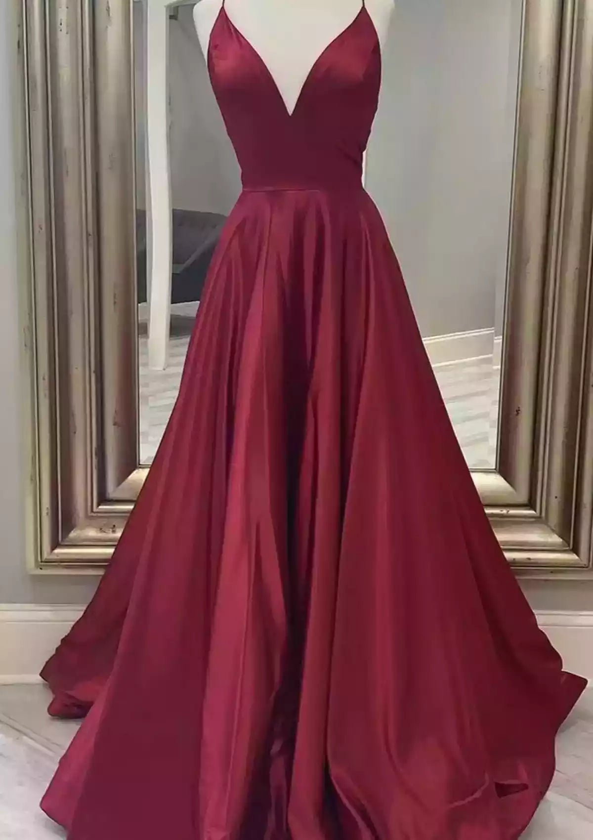 Charming A-line V-neck slim shoulder strap long/satin Prom Dresses - US 2 / UK 6 / EU 32