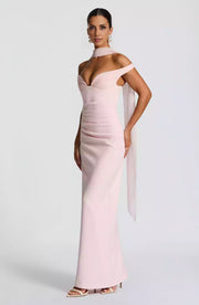 Charming non stretch crepe deep V-neck off shoulder collar elastic back with pleated chiffon back slit Prom Dresses