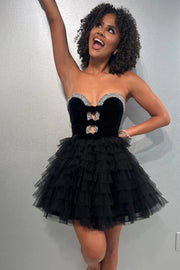 Cute Black A-Line Sweetheart Short Tulle Unique Design Homecoming Dress - US 2 / UK 6 / EU 32
