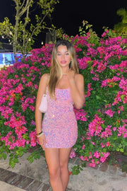 Cute Sheath Spaghetti Straps Pink Sequins Short Homecoming Dress - US 2 / UK 6 / EU 32