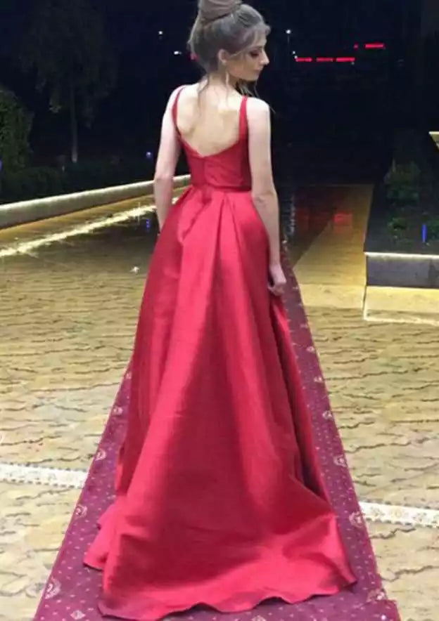 LANQI elegant and charming A-line/princess style round neck sleeveless trailing satin Prom Dresses. This evening gown is made of satin fabric, with a deep V-strap design and a large swing tail shape, showcasing elegance and grandeur. The long silhouette fits the body shape, and the satin material is glossy and has a good drape. The deep V-strap design adds sexy details, and the large tail enhances the overall aura. It is suitable for occasions such as socialite banquets and high-end dinners, and is a high-quality choice to showcase unique temperament and fashion taste.