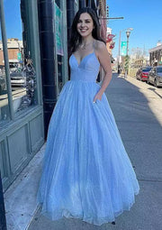 LANQI elegant and charming princess style A-line V-neck long/floor chiffon sequin Prom Dresses. This evening gown is made of shiny mesh fabric, with a deep V-design combined with backless lace up elements and a large swing shape, showcasing a dreamy and fairy like atmosphere. The long version is elegant and dynamic, with sparkling mesh material shining brightly under the light. The deep V-backless and lace up design adds sexy details, and the large display enhances the aura. It is suitable for occasions such as socialite banquets and high-end dinners, and is a high-quality choice to showcase unique temperament and fashion taste.