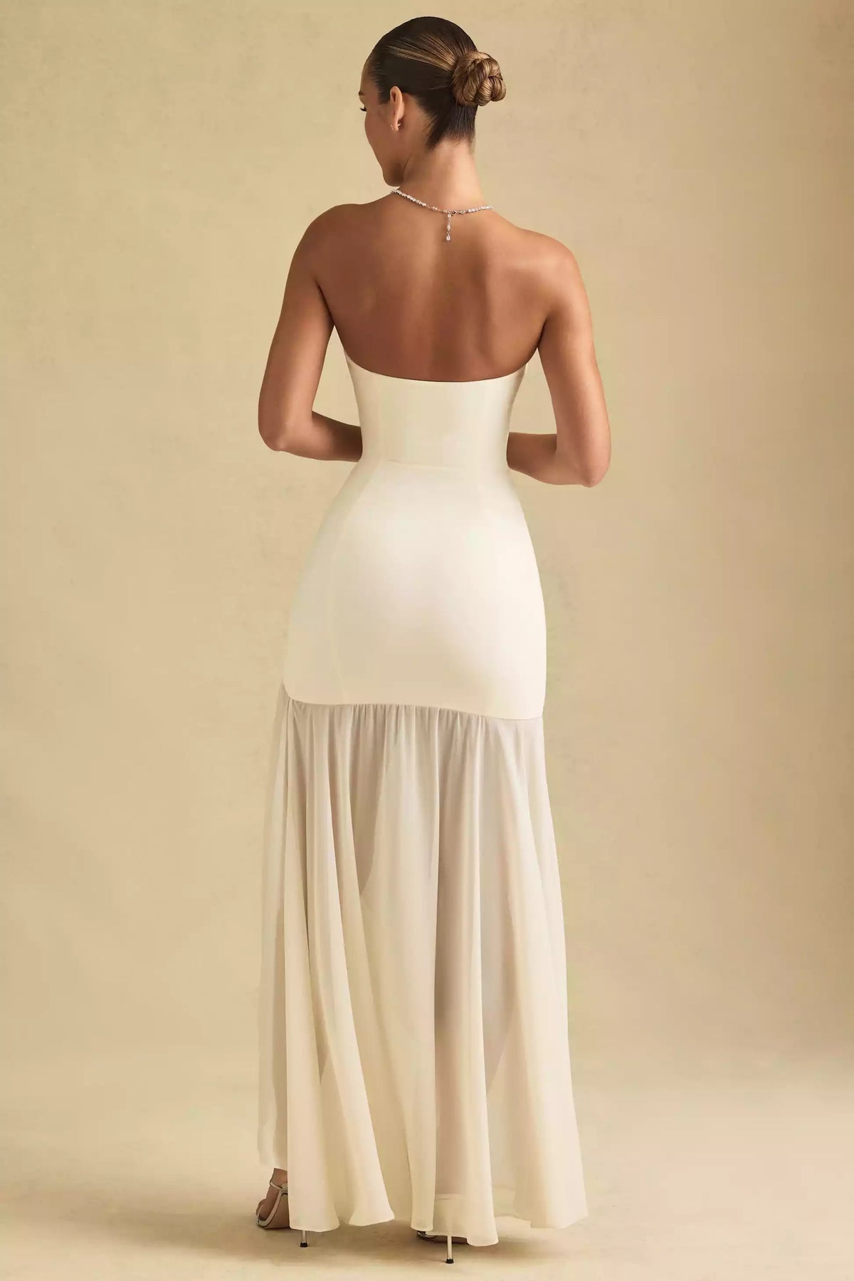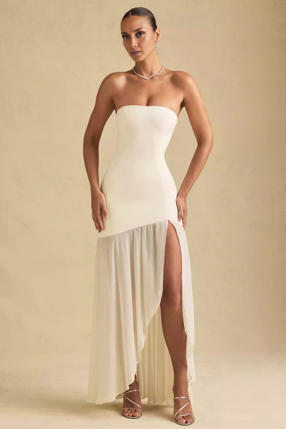 Enchanting high-quality chiffon strapless design paired with perspective asymmetric skirt and three-dimensional cut Prom Dresses