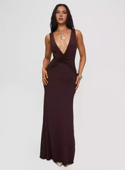 LANQI's exquisite backless deep V-neck pleated ruffle hem with adjustable shoulder straps and fully lined Prom Dresses. This dress is made of lightweight fabric, featuring a deep V-neck, hollowed out waist, exposed back, and slim fit skirt design paired with a long silhouette, showcasing a vintage and high-end style. The fabric has a soft and snug drape, and the deep V-neck and hollow design enhance the exquisite atmosphere. The exposed back cut decorates the shoulder and neck lines, and the slim fit skirt fits the body and naturally shows elegant curves. It is suitable for high-end dinners, retro themed parties and other occasions, and is an excellent choice to showcase fashion taste and calm temperament.