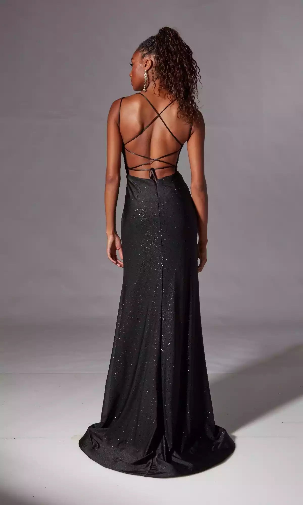 LANQI's gorgeous imitation wrap long style flash V-neck cross double layered thin suspender with side slits Prom Dresses. This evening gown is made of sequined fabric, featuring a cross band design with high slit elements and a tail tail design, showcasing sexiness and grandeur. The long version fits the body shape, with sparkling sequin material and unique details added by the cross band design. The high slit enhances the dynamic aura, and the tail tail tail enhances the overall momentum. It is suitable for occasions such as socialite banquets and high-end dinners, and is a high-quality choice to showcase unique temperament and fashion taste.