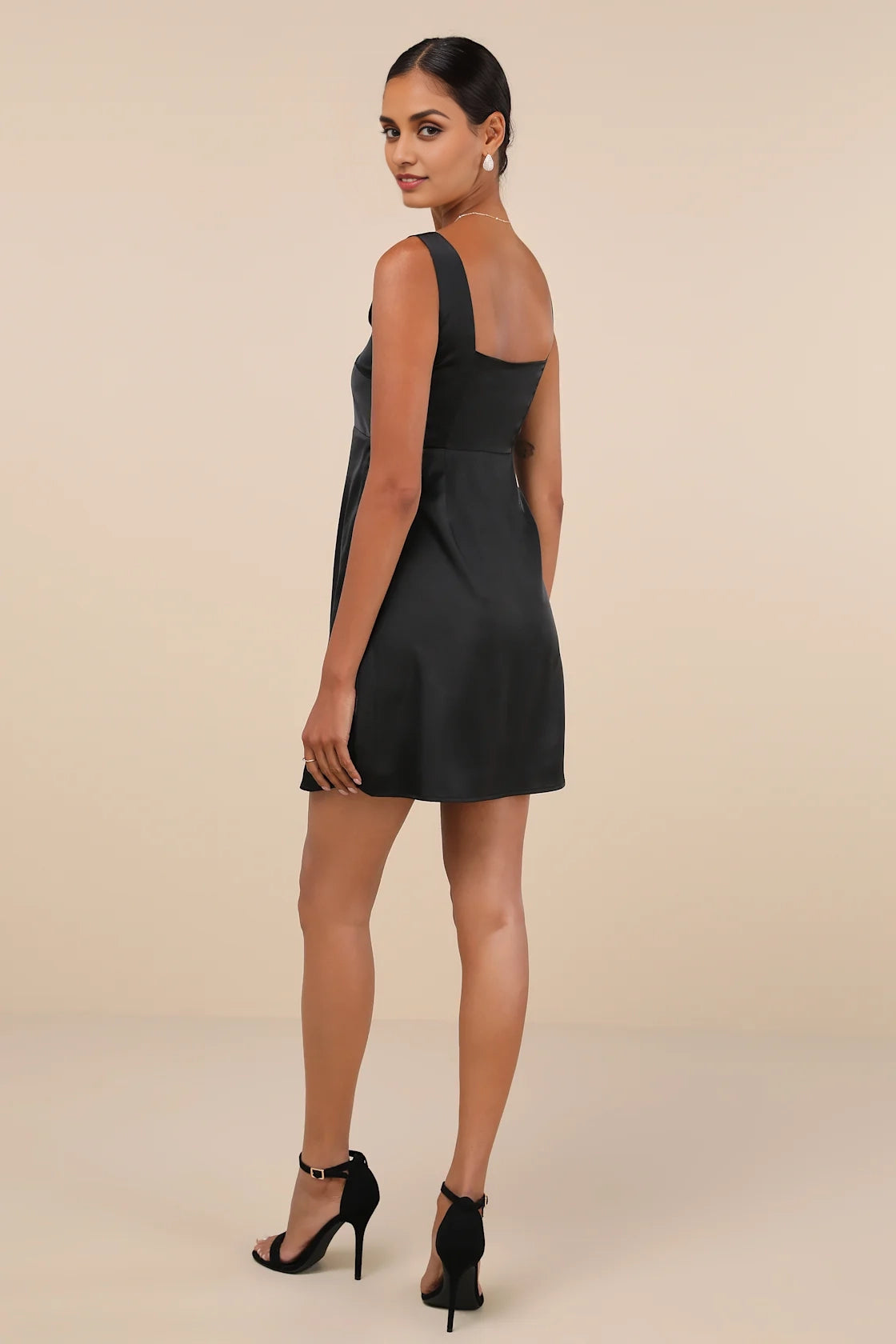LANQI Cute Satin Square Neck Mini pleated Corset Tank Top Straps Prom Dresses