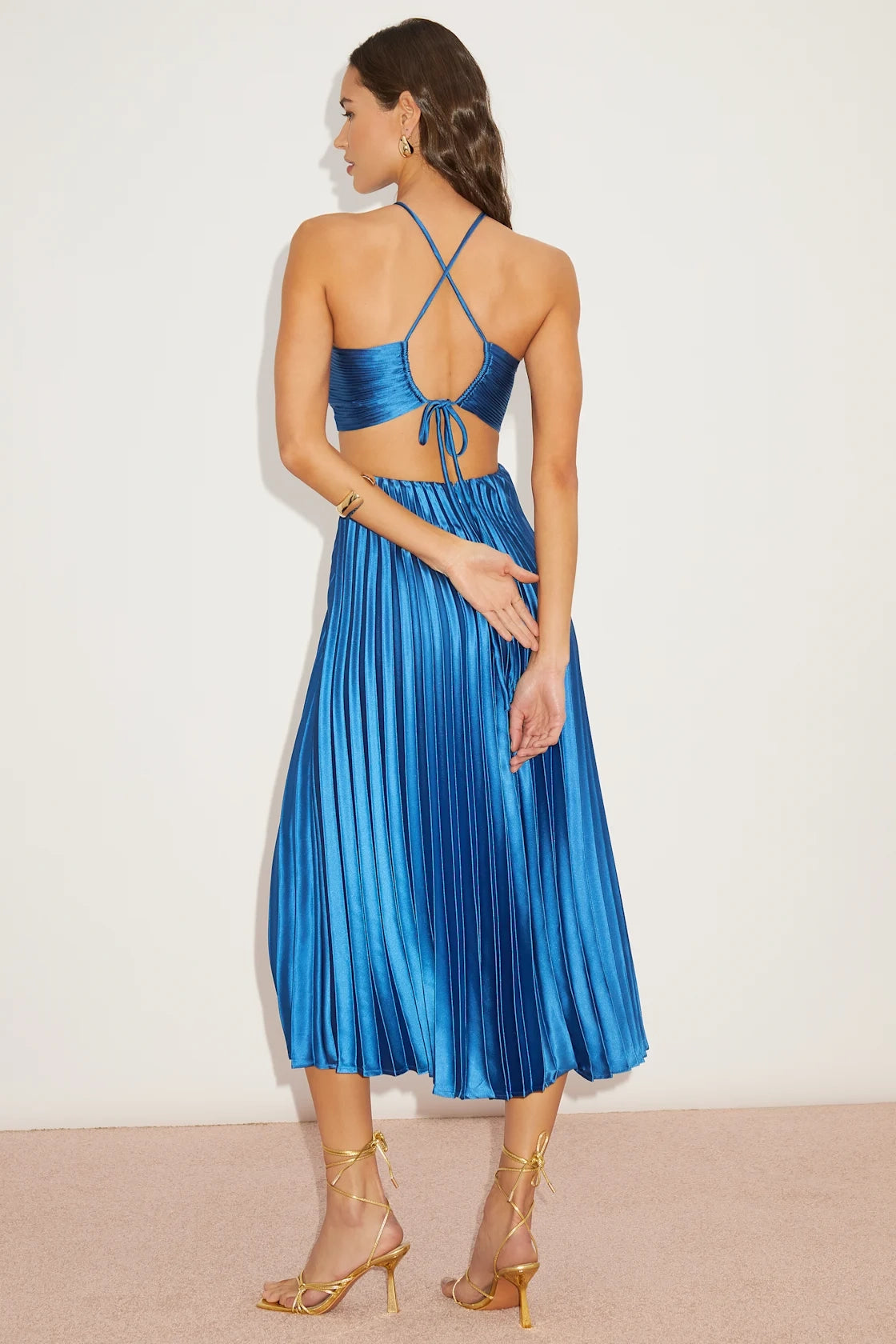 stunning pleated satin slim shoulder straps hanging neck collar sleeveless tight corset Homecoming Dresses