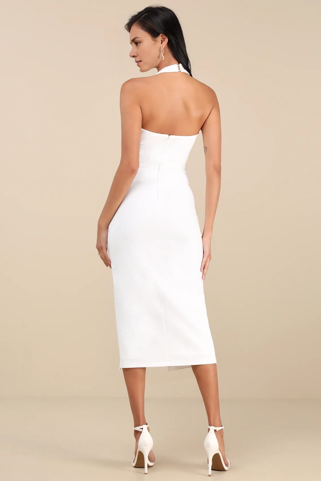 LANQI's stunning stretch crepe knit pleated backless slimming waist Homecoming Dresses