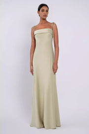 LANQI's eye-catching luxury satin thin shoulder straps, straight neckline, diagonal cut, fully lined, and mid zip Prom Dresses. This dress is made of satin fabric, with thin straps, bow decorations, and a backless design paired with a long hanging silhouette, showcasing a fresh and gentle style. The satin material has a delicate and smooth luster, with a thin strap cut that accentuates the shoulder and neck lines. The butterfly knot element on the shoulder strap adds a lively and girlish feel, while the backless design enhances the delicate atmosphere. The hanging skirt combines elegant texture and comfortable experience, making it suitable for light luxury dinners, spring and summer parties, and other occasions. It is a high-quality choice to showcase fashion taste and gentle temperament.