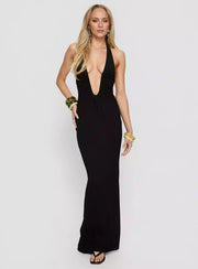 LANQI's sexy deep V-back backless neckline with adjustable hanging neck straps and low back Prom Dresses. This dress is made of textured fabric, featuring a hanging neck, deep V-neck, exposed back, and slim fit skirt design paired with a long silhouette, showcasing a sexy and high-end style. The fabric has a delicate and close fitting drape, with a hanging neck cut that accentuates the shoulder and neck lines. The deep V-neck and backless design enhance the delicate atmosphere, while the slim fit skirt fits the body and naturally displays elegant curves. It is suitable for high-end dinners, fashionable parties, and other occasions, and is a high-quality choice for showcasing fashion taste and atmospheric temperament.