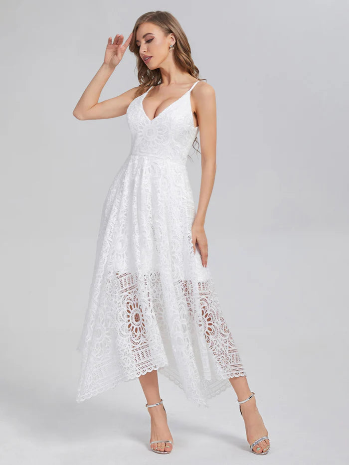 Sleeveless Tea Length Lace Unique Design Full Of Charm Prom Dress - US 2 / UK 6 / EU 32