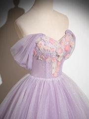 Sparkly Tulle Prom Dress Off the Shoulder Floral Appliques Ball Gown