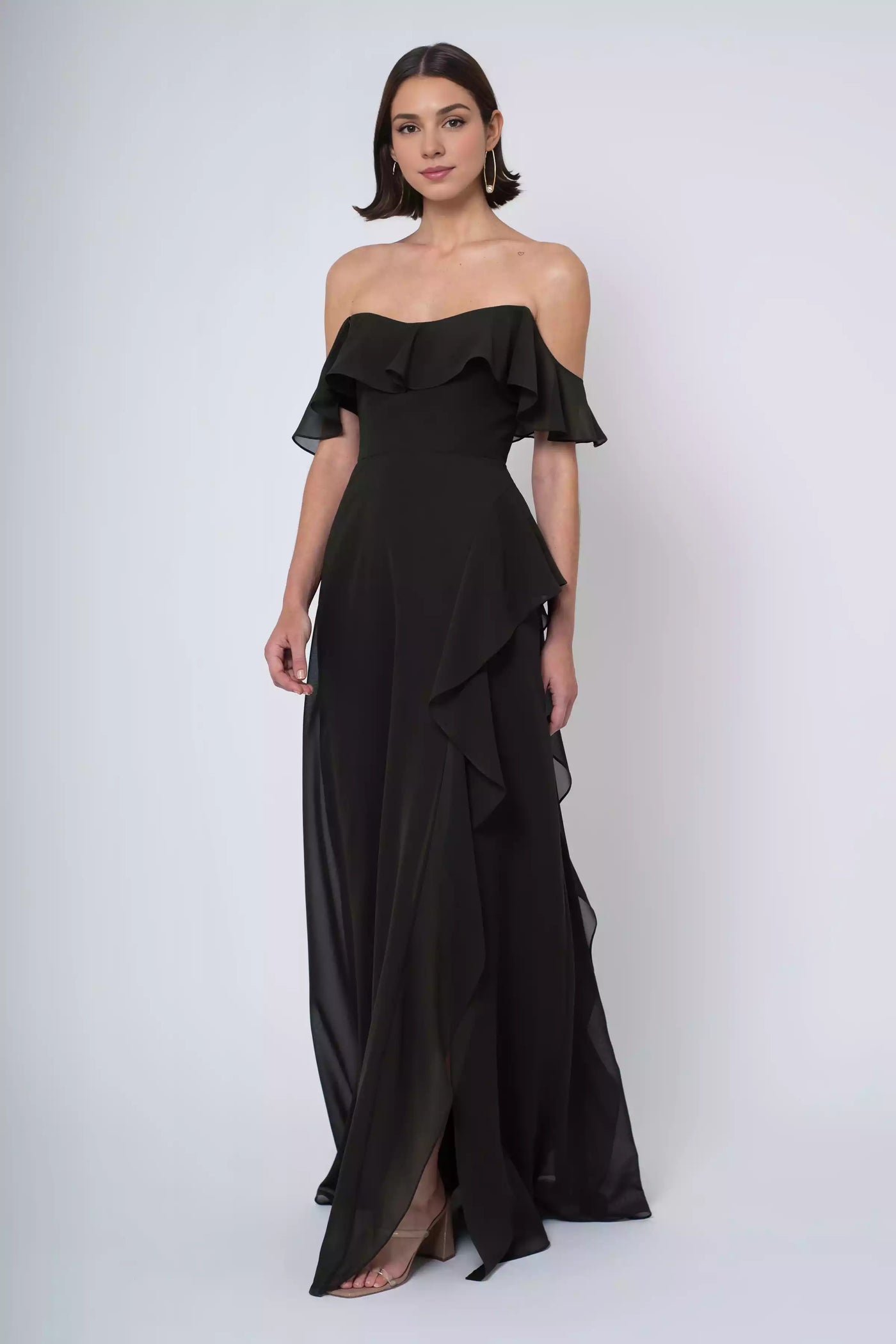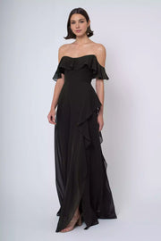 Stunning luxury chiffon round tie with ruffled edge, exposed shoulder, ruffled edge, A-line back zipper, Prom Dresses