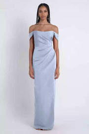 LANQI's stunning round neck, detachable off shoulder sleeves, tight corset with asymmetrical pleats, slim fit, and a back zipper Prom Dresses. This dress is made of satin fabric, with a one shoulder and slim pleated design paired with a long silhouette, showcasing a gentle and elegant style. The satin material is smooth and glossy, with a one shoulder cut that accentuates the shoulder and neck lines. The pleated details at the waist optimize the proportion of the body, and the slim fit skirt fits the body while also considering the drape texture. It is suitable for light luxury dinners, girlfriends' gatherings, and other occasions, and is a high-quality choice to showcase fashion taste and gentle temperament.