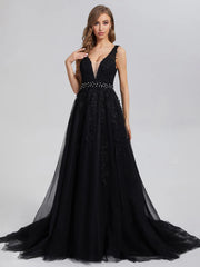 V-neck Backless Appliques Satin Unique Design Full Of Charm Prom Dress - US 2 / UK 6 / EU 32