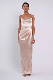 LANQI's fashionable and elegant tight corset with pleated slit skirt, strapless neckline, and pleated slit Bridesmaid Dresses. This evening gown is made of satin fabric and features a strapless design that exudes elegance and simplicity. The shape fits the body, the satin material is high-quality and glossy, and the strapless design adds exquisite details. The overall style is fashionable and atmospheric, suitable for occasions such as socialite banquets and high-end dinners, and is a high-quality choice to showcase unique temperament and fashion taste.