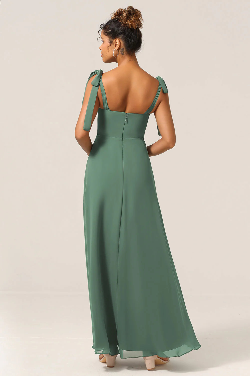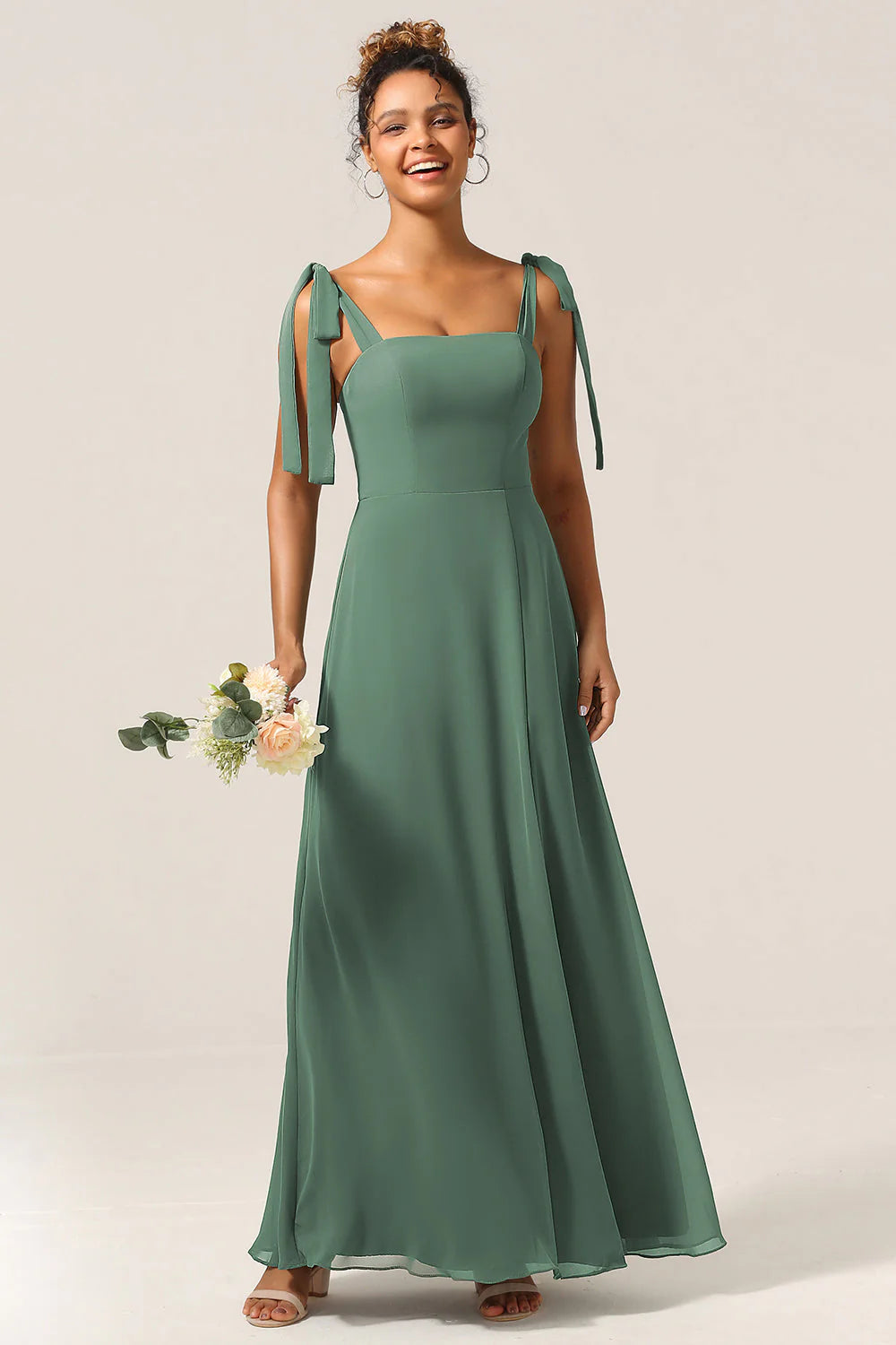 A-Line Spaghetti Straps Floor-Length Chiffon Bridesmaid Dress with Slit