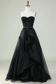 Black Princess A Line Sweetheart Strapless Formal Evening Dress