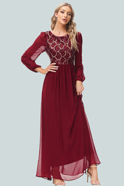 Elegant A-line Round Neck Chiffon Splicing Sequined Toast Dress Evening Dress with Slit
