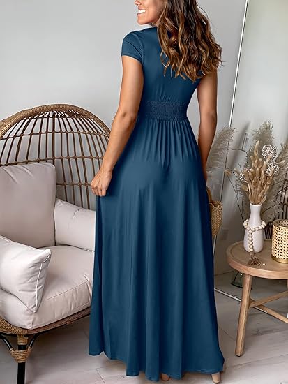 Women Summer Deep V Neck Short Sleeve Dresses Evening Dresses