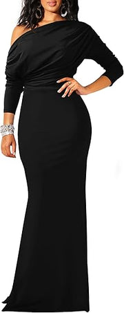 Women's Sexy Elegant Long Sleeve Off Shoulder Bodycon Long Evening Formal Dress