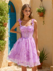 A-Line/Princess Spaghetti Straps Sleeveless Corset Homecoming Dresses