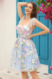 Blue Flower Mermaid Off The Shoulder Corset Short Homecoming Dress with Embroidery - US 2 / UK 6 / EU 32