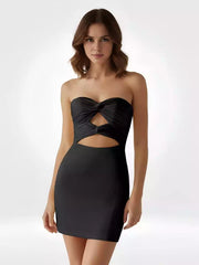 LANQI's charming tight spandex off shoulder sleeveless keyhole tie back Homecoming Dresses. This short skirt is cool and sexy. The strapless design exposes the charming shoulders and neck, while the hollow chest design adds a touch of sexiness. The back strap design not only adjusts the elasticity, but also has great decorative value. The slim fit perfectly highlights the curves and has a high-end texture. Whether it's a party, date, or casual gathering, it can easily make you the center of attention and unleash your unique charm of cool and sexy.