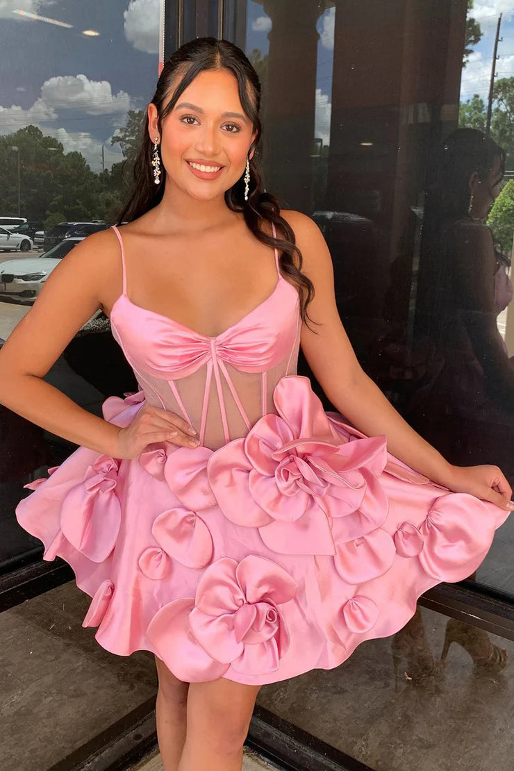 Cute A Line V Neck Pink Satin Short Full Of Charm Homecoming Dresses