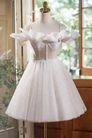 Cute Spaghetti Strap Tulle Lace Homecoming Dress, Off Shoulder Short Prom Dress - US 2 / UK 6 / EU 32