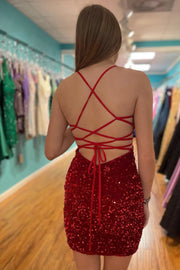 Cute Sparkly Scoop Neck Dark Red Sequins Short Full Of Charm Homecoming Dress - US 2 / UK 6 / EU 32