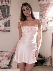 LANQI's exquisite thin shoulder strap with A-line satin sleeveless bow tie back Homecoming Dresses. This short skirt is sweet and exquisite. The suspender design exposes the charming shoulders and neck, while the bow decoration on the chest adds a sweet touch. The backless strap design shows off its small sexiness, and the satin material texture is high-end. Whether it's a party, a date, or an important occasion, it can easily make you the center of attention and unleash your sweet and exquisite unique charm.