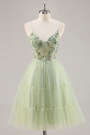 Green A-Line Floral Embroidered Short Homecoming Dress with Beading