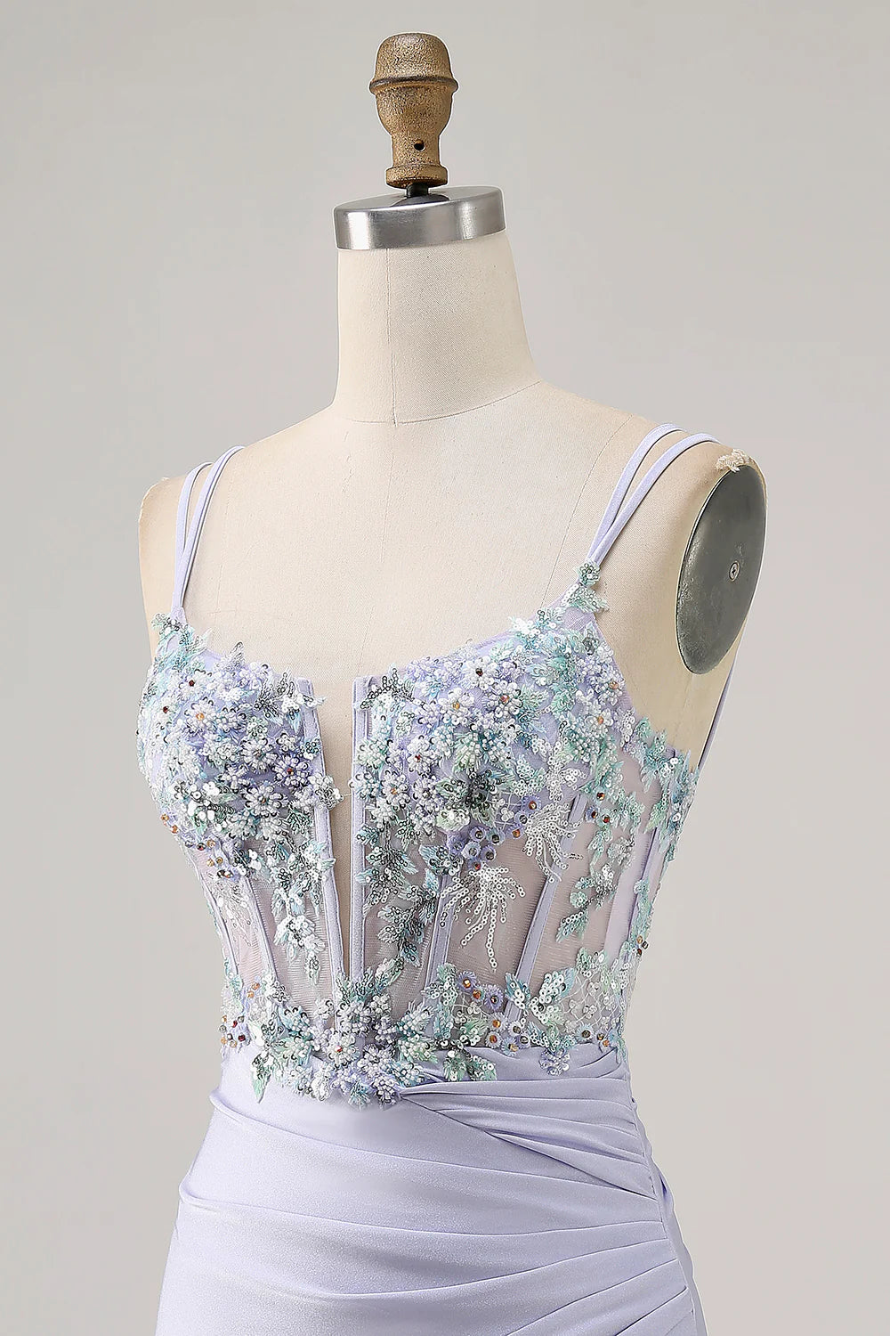 Lavender Satin Floral Corset Short Homecoming Dress with Lace - US 2 / UK 6 / EU 32