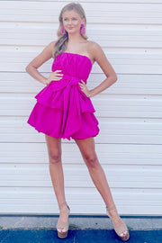 Magenta Strapless Bow-Front Short Retract Your Waist Homecoming Dress