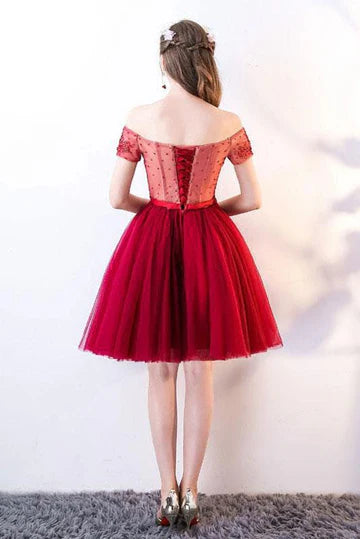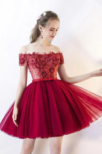 Off the Shoulder Red Floral Short Retract Your Waist Homecoming Dress