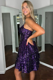 Spaghetti Straps A-Line V-Neck Sequined Short Homecoming Dress