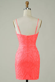 Spaghetti Straps Peach Glitter Tight Full Of Charm Homecoing Dress