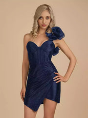 LANQI's shiny one shoulder tight floral sleeveless sequins and floral lace up back Homecoming Dresses. This short skirt is elegant and sparkling. The single shoulder design is paired with floral decorations, revealing a charming shoulder and neck while adding a romantic touch. The sequin fabric shines and attracts attention in the light, and the side slit design is dynamic and eye-catching. The back strap design not only adjusts the elasticity, but also has high decorative value, with a high-end texture. Whether it's a party, date, or casual gathering, it can easily make you the center of attention and unleash your unique charm of elegance and radiance.