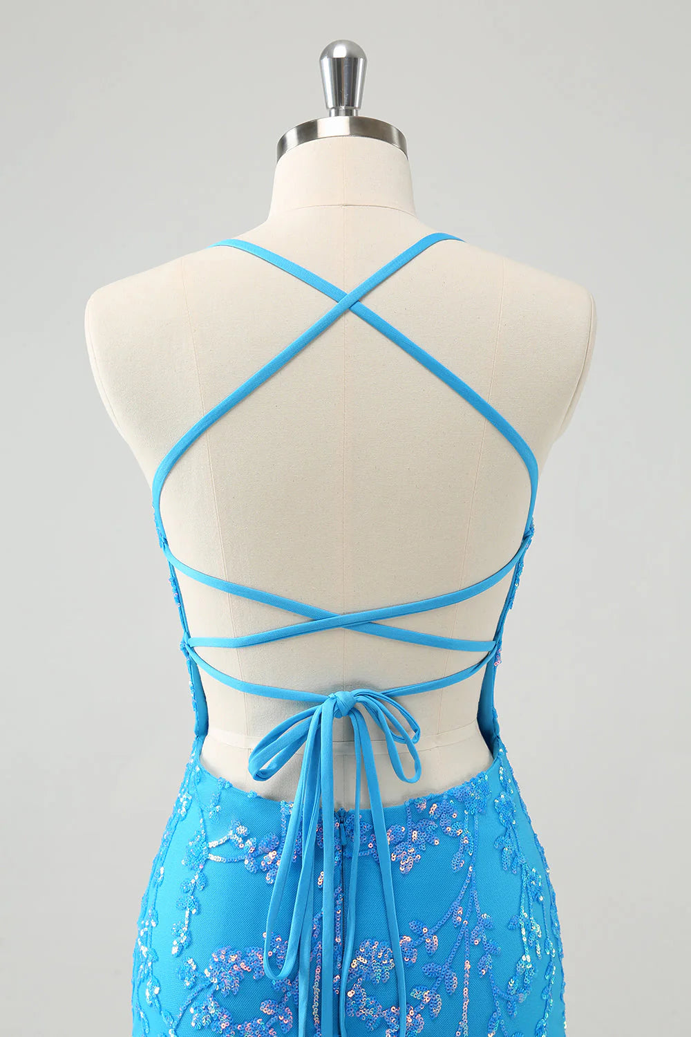 Sparkly Sky Blue Tight Short Full Of Charm Homecoing Dress