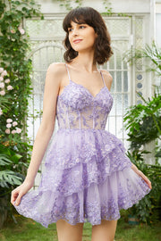 Sparkly Spaghetti Straps Sequins Purple Short Homecoming Dress