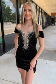 Stunning Black Off The Shoulder Short Velvet Homecoming Dress