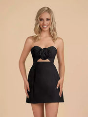 LANQI's stunning tight satin short off shoulder sleeveless hollow lace up back Homecoming Dresses. This short skirt is cool and exquisite. The strapless design exposes the charming shoulders and neck, while the floral decoration and hollow design on the chest add delicacy and small sexiness. The back strap design not only adjusts the elasticity, but also has high decorative value, with a high-end texture. Whether it's a party, a date, or an important occasion, it can easily make you the center of attention and unleash the unique charm of coolness and refinement.