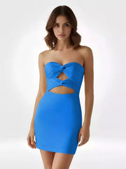 LANQI's stunning tight spandex short off shoulder keyhole sleeveless lace up back Homecoming Dresses. This short skirt is fresh and sexy. The strapless design exposes the charming shoulders and neck, while the hollow chest design adds a touch of sexiness. The back strap design not only adjusts the elasticity, but also has great decorative value. The slim fit perfectly highlights the curves and has a high-end texture. Whether it's a party, date, or casual gathering, it can easily make you the center of attention and unleash your unique charm of freshness and sexiness.