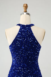 Stylish Sparkly Royal Blue Tight Lace Up Back Sequin Homecoming Dress with Beading - US 2 / UK 6 / EU 32