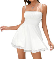 Summer Strap Lace Mini Dress Square Neck Ruffle Homecoming Dresses