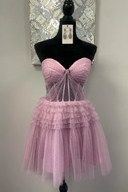 Sweetheart Pink Tiered Short Full Of Charm Homecoming Dresses