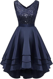 V Neck A-line High Low Satin Formal Homecoming Dresses - US 2 / UK 6 / EU 32