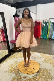 V-neck Champagne Sequin A-line Short Unique Design Full Of Charm Prom Dresses