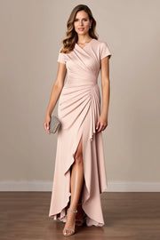 Apricot Sheath V-Neck Long Ruched Mother of the Bride Dress with Slit - US 2 / UK 6 / EU 32